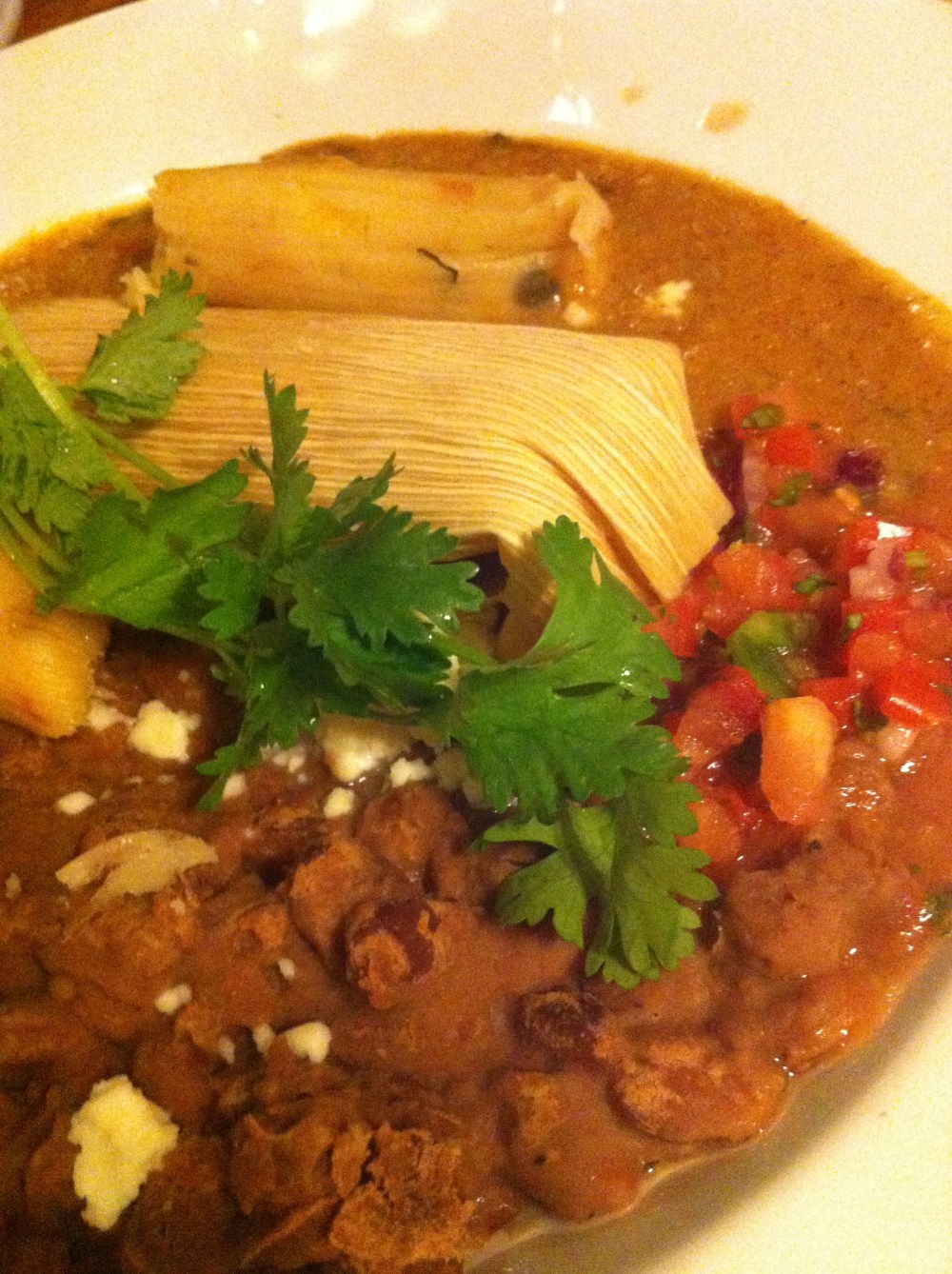 I decided to try a local Denver wine on tap from the Infinite Monkey Theorum winery: Monkeyshine White. See my dinner below, it’s first night on the menu – the Summer Tamale Plate. Both wine and dinner were delicious. My family had the bangers and mash, and buttermilk fried chicken, and also just loved them.