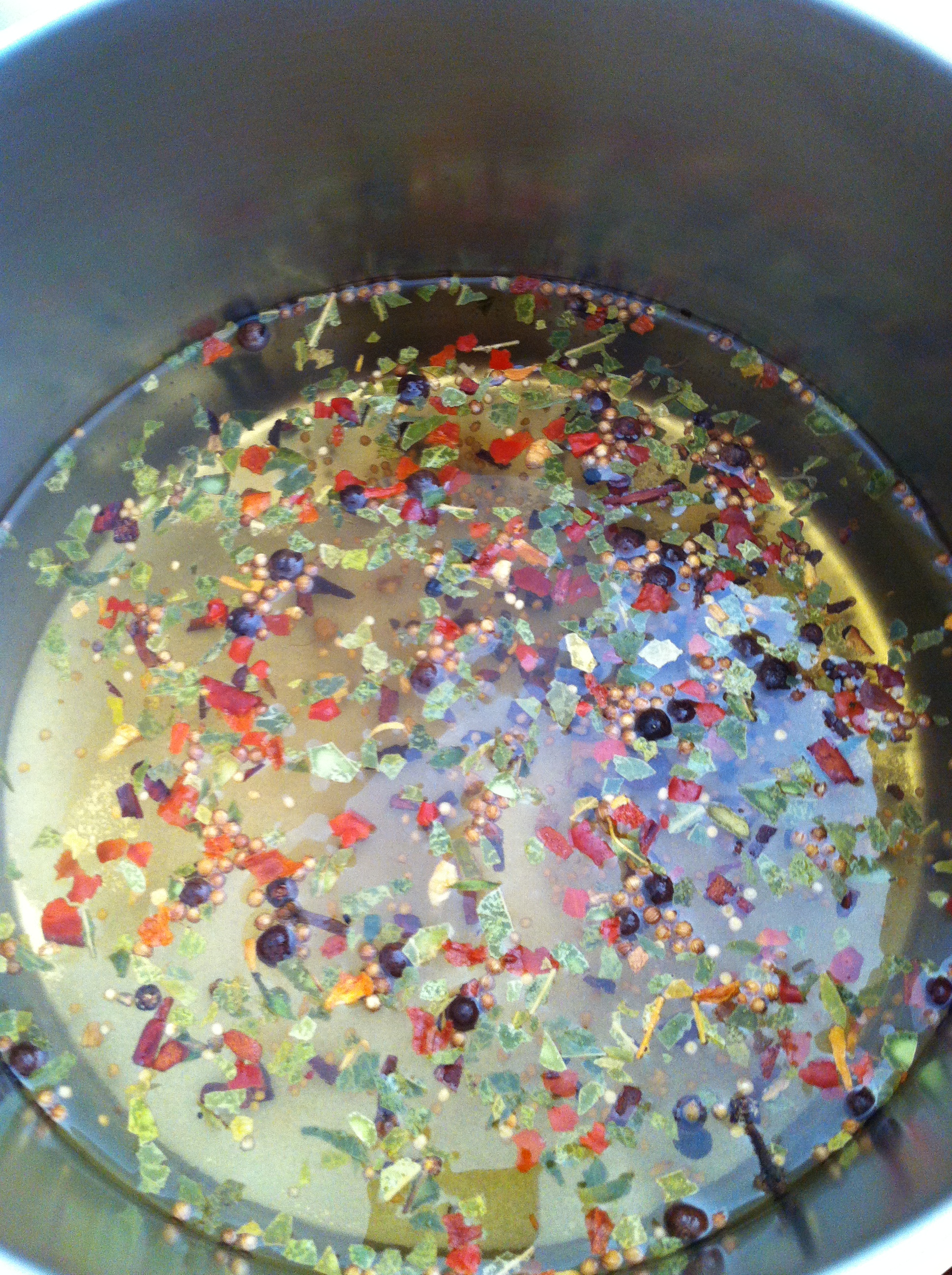 the pickling liquid – spices, apple cider vinegar, kosher salt, organic sugar, water Posted by Margaret Gilfoyle on July 10, 2012