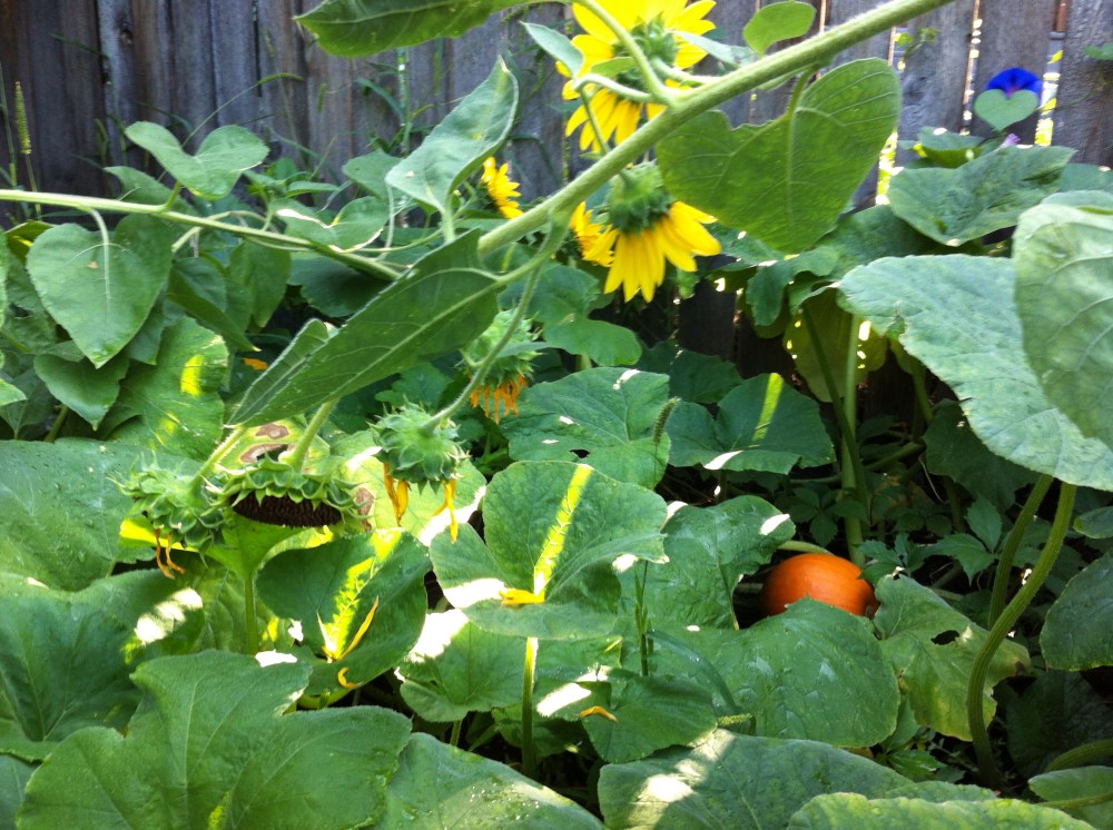 I do not really practice the native traditions. I do recognize them tho–The sweetgrass braid and the Three Sisters. Only a couple of sisters made it this year here….I do stack rocks–because I like stacking rocks…and I planted gourds and sunflowers for the birds. I have made sage smudges too.