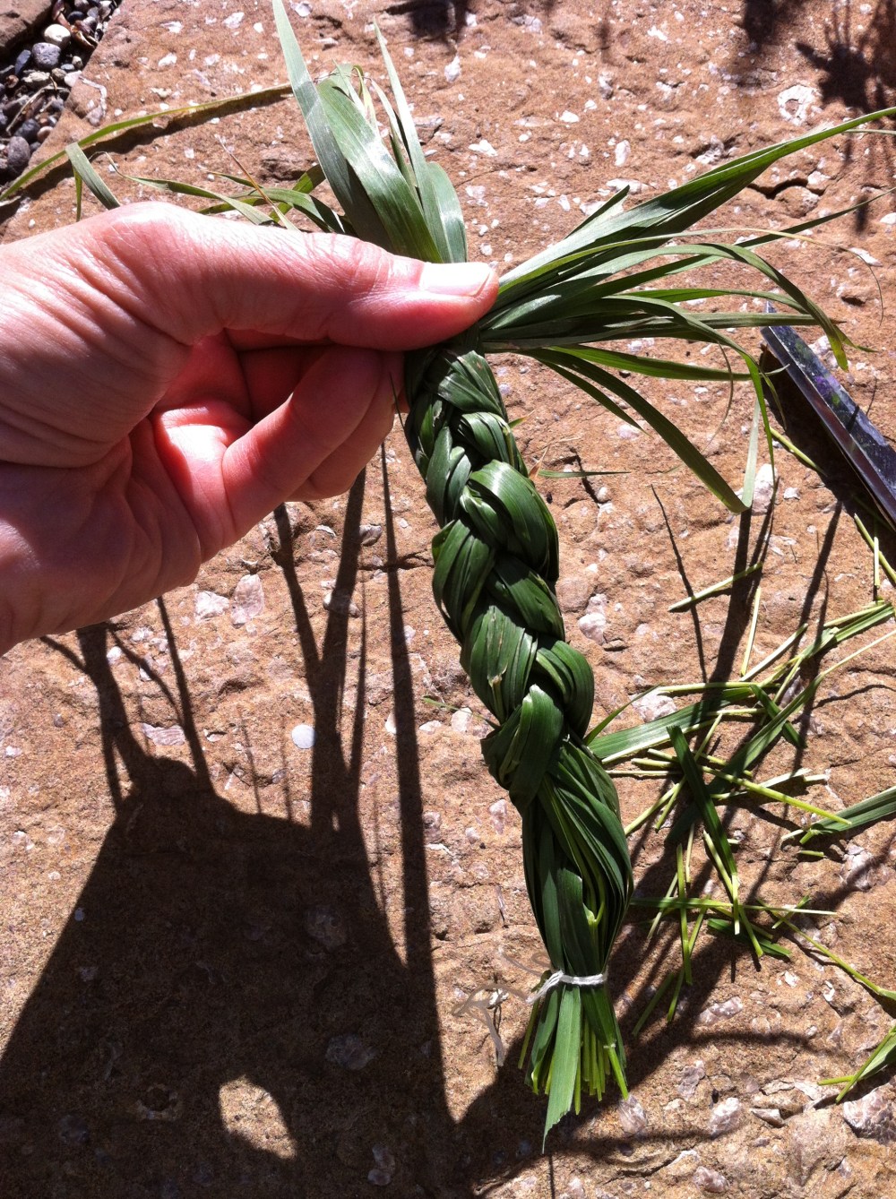 It’s early morning yet, and I have the whole day ahead. Plenty of time to cook, to plan what to bring. My friend Jeff has also called me, and invited me to help tend the fire for a Lakota sweat lodge tomorrow night here in the valley. After our deluge of rain, it is perfect timing. So now it feels right for a different kind of harvest. For the lodge. And my first sweetgrass braids. I go find the scissors.