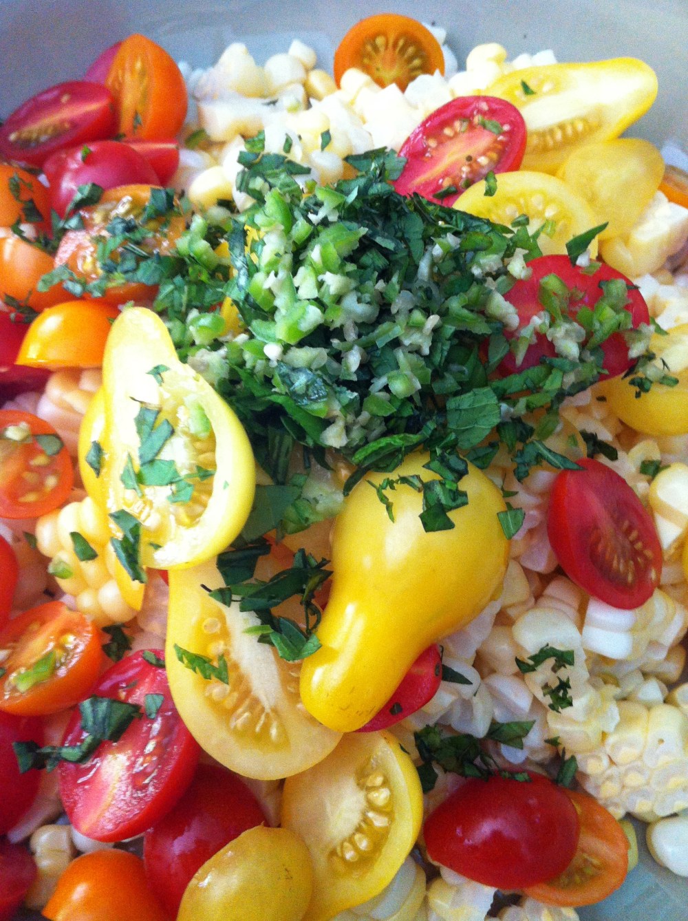 - 4 c. sweet corn kernels (fresh cut off the cobs – Luscious bi-color organic from the garden)