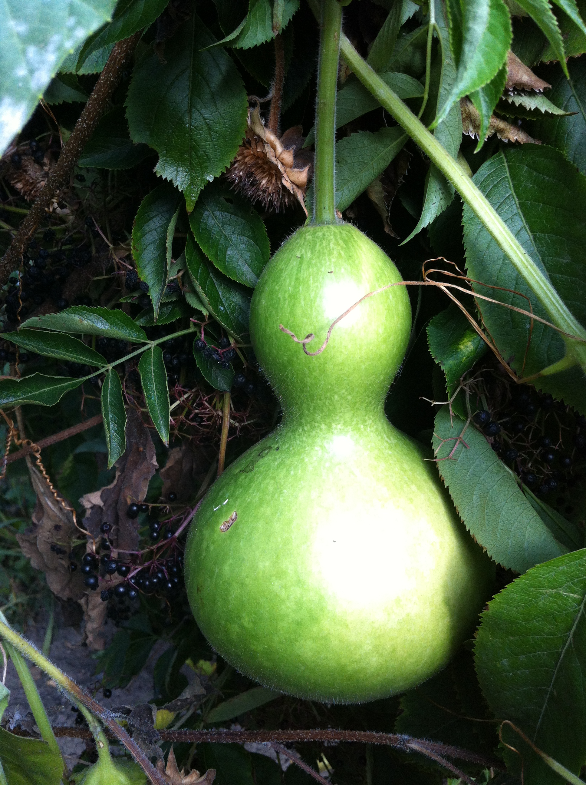 many bottle gourds nearing maturation, they seem to glow in this light Posted by Margaret Gilfoyle on October 4, 2012