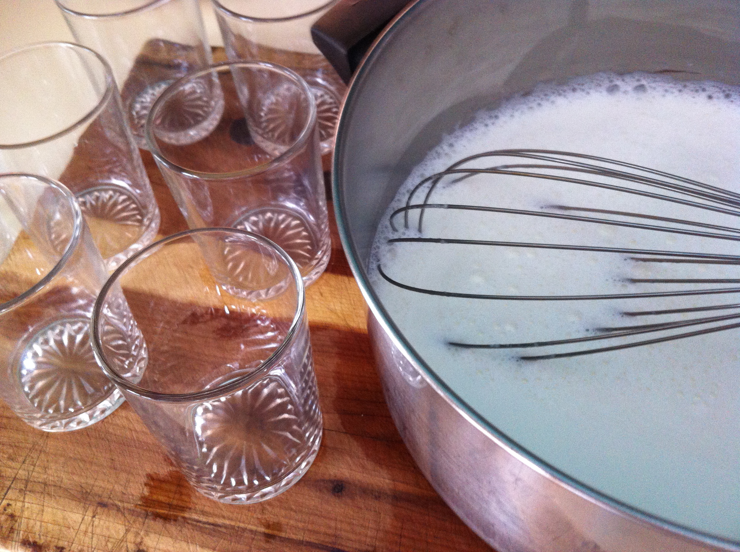 Heat milk to almost the boiling point, then cool. Whisk in active yogurt. Posted by Margaret Gilfoyle on January 6, 2013