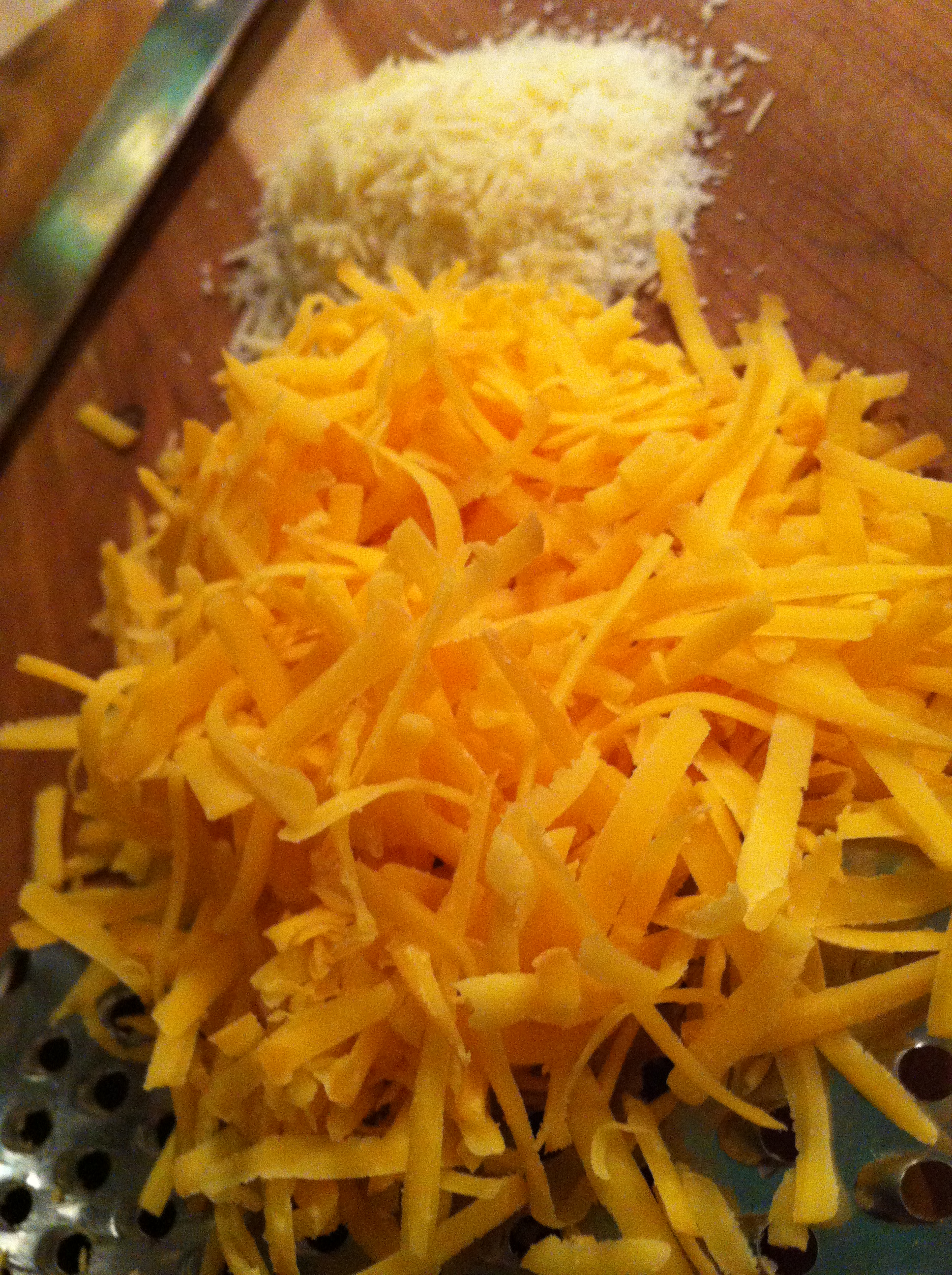 - 2 c. shredded smoked cheddar cheese (I’ve been on a smoked cheddar kick! – Tillamook brand is great -their milk cows fed a pure diet)