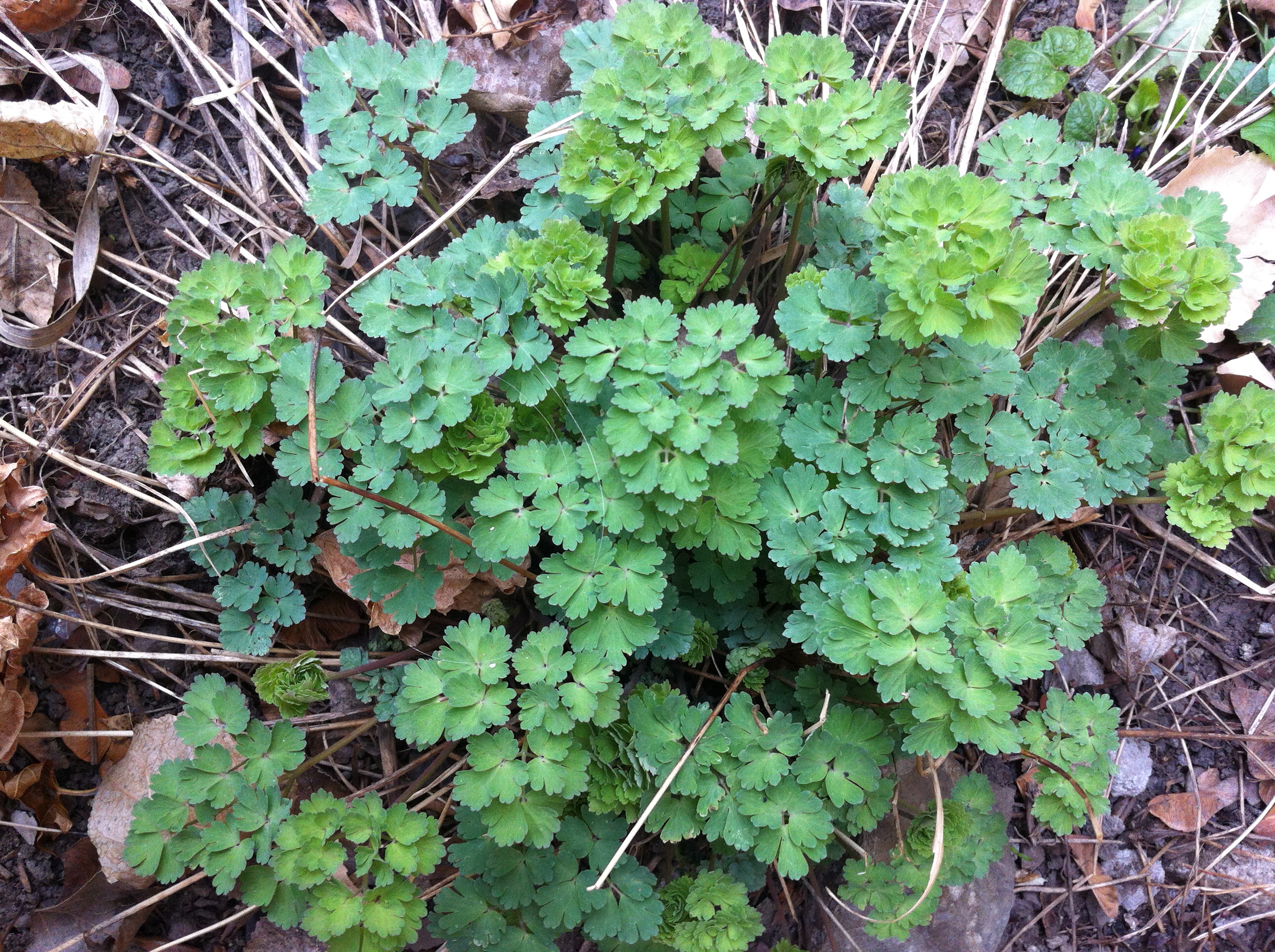 The wind picks up, clouds amassing, and below, the mound of salad burnet glows in the April light.