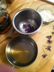 The sweet, delicate work station for making the maple sugared violets. Only thing better would be if I had freshly made maple syrup within reach!! Posted by Margaret Gilfoyle on April 6, 2013