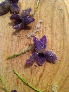 A beauty! Have you ever tasted sugared violets? These have a divine, subtle, maply flavor! Let them completely dry first, if you have the will power! The crunch and following sweetness of the flower itself is…exquisite!