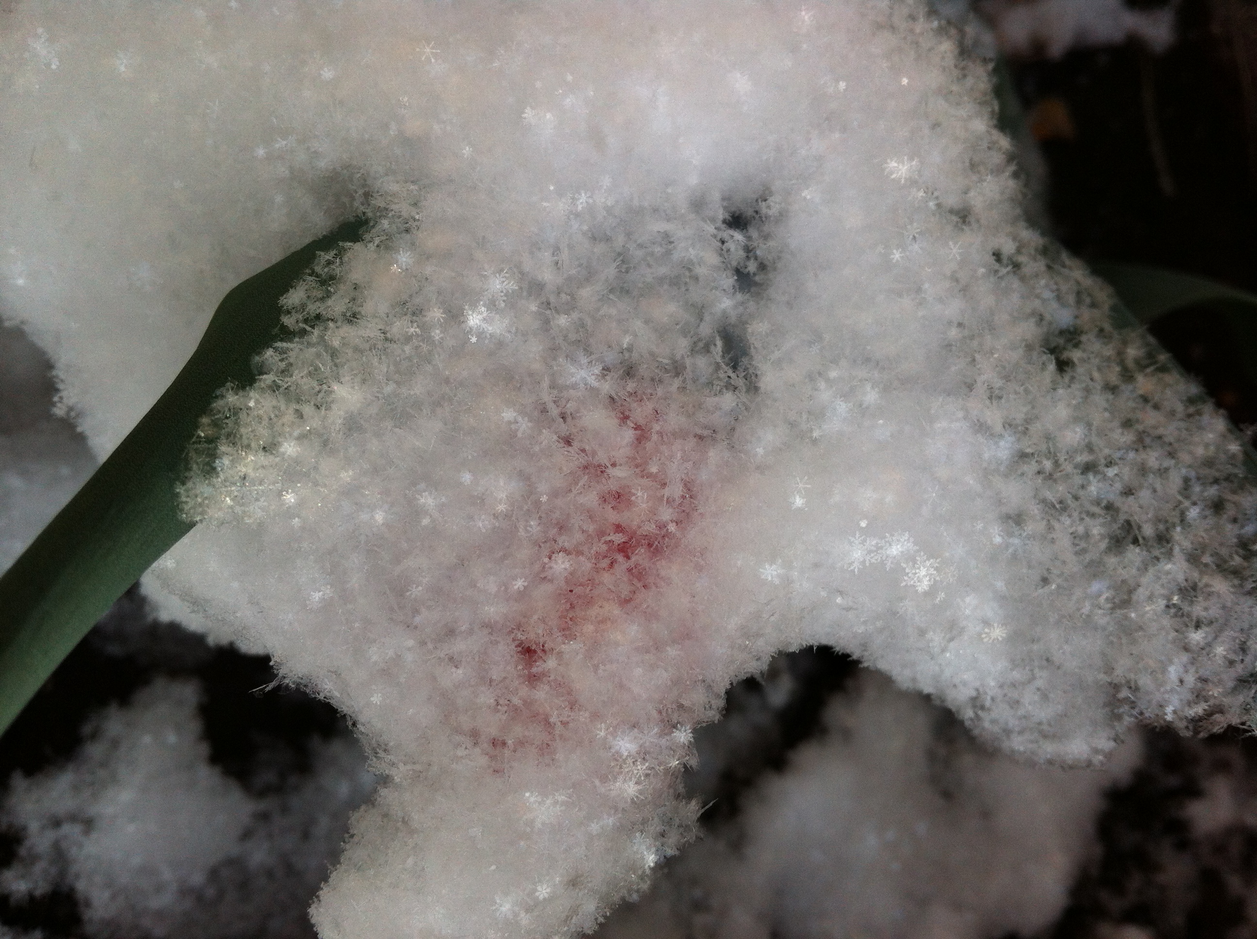 red tulip a-sparkle with perfect snowflakes