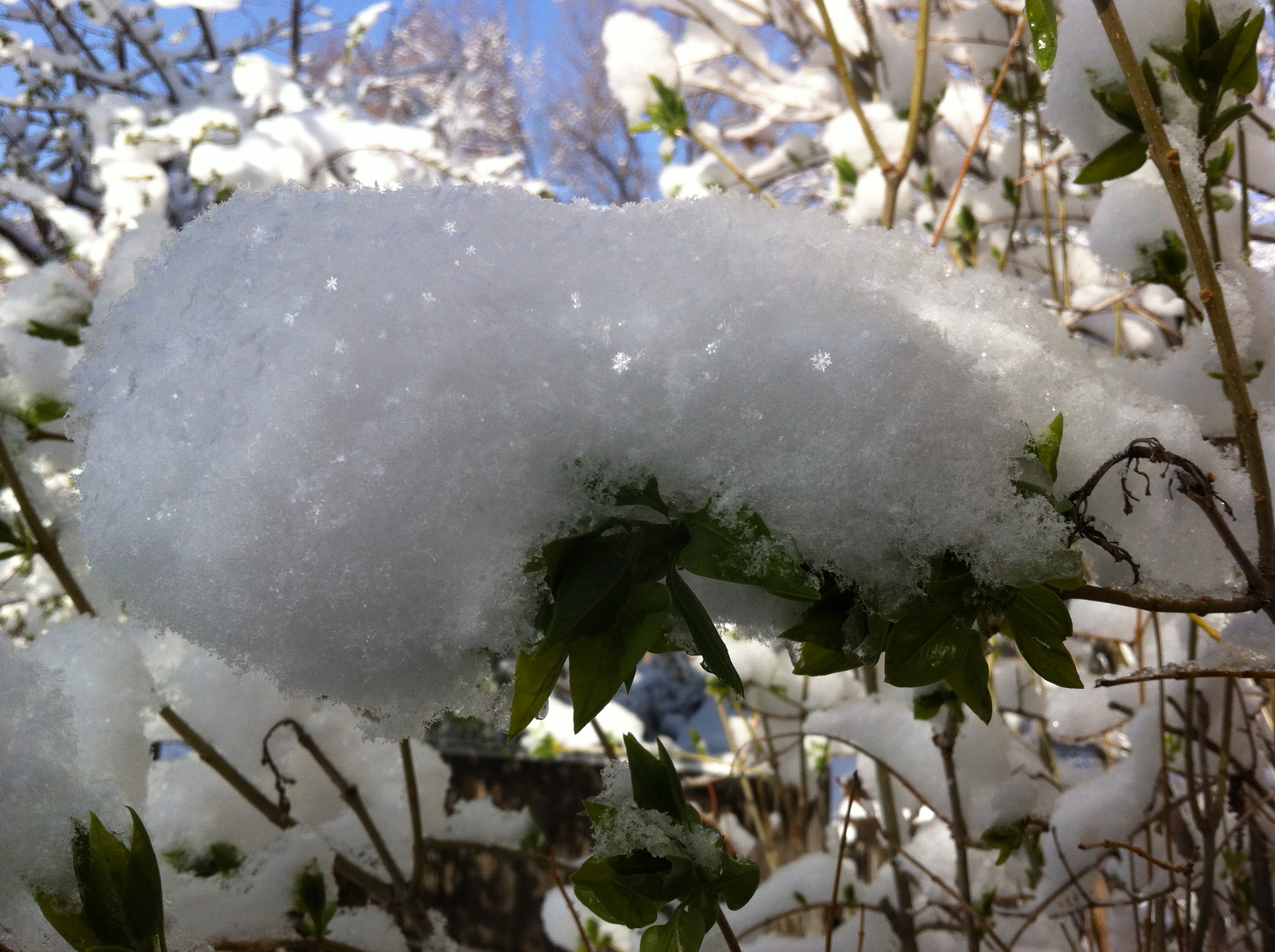 Not many words are needed for this spectacular morning on Earth. Just look, and click to enlarge – the sun shown at an angle through the delicate mounds of snow, and in several photos, captured the exquisite singular snowflakes themselves…