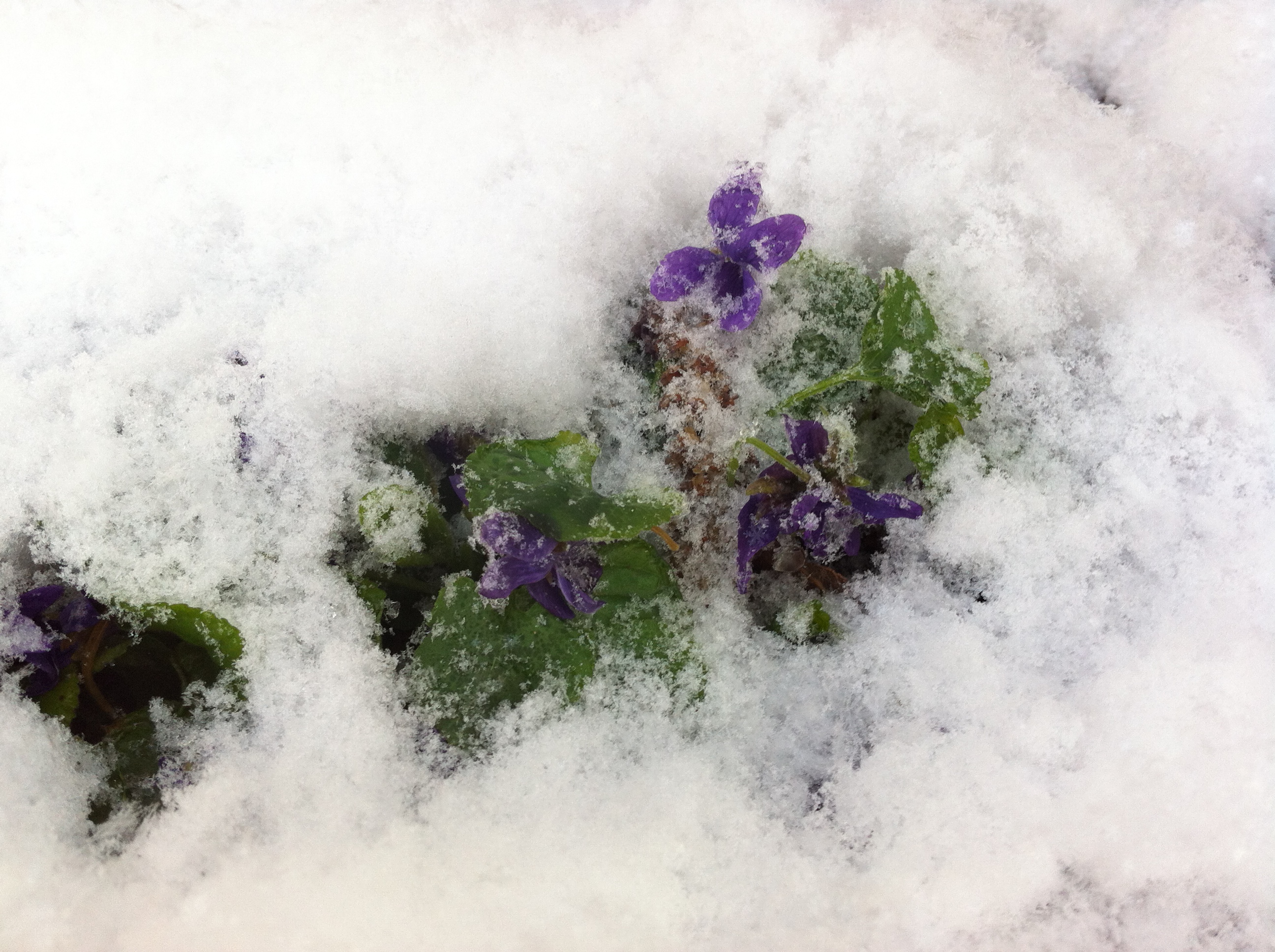 “sugared” with snow – spring violets