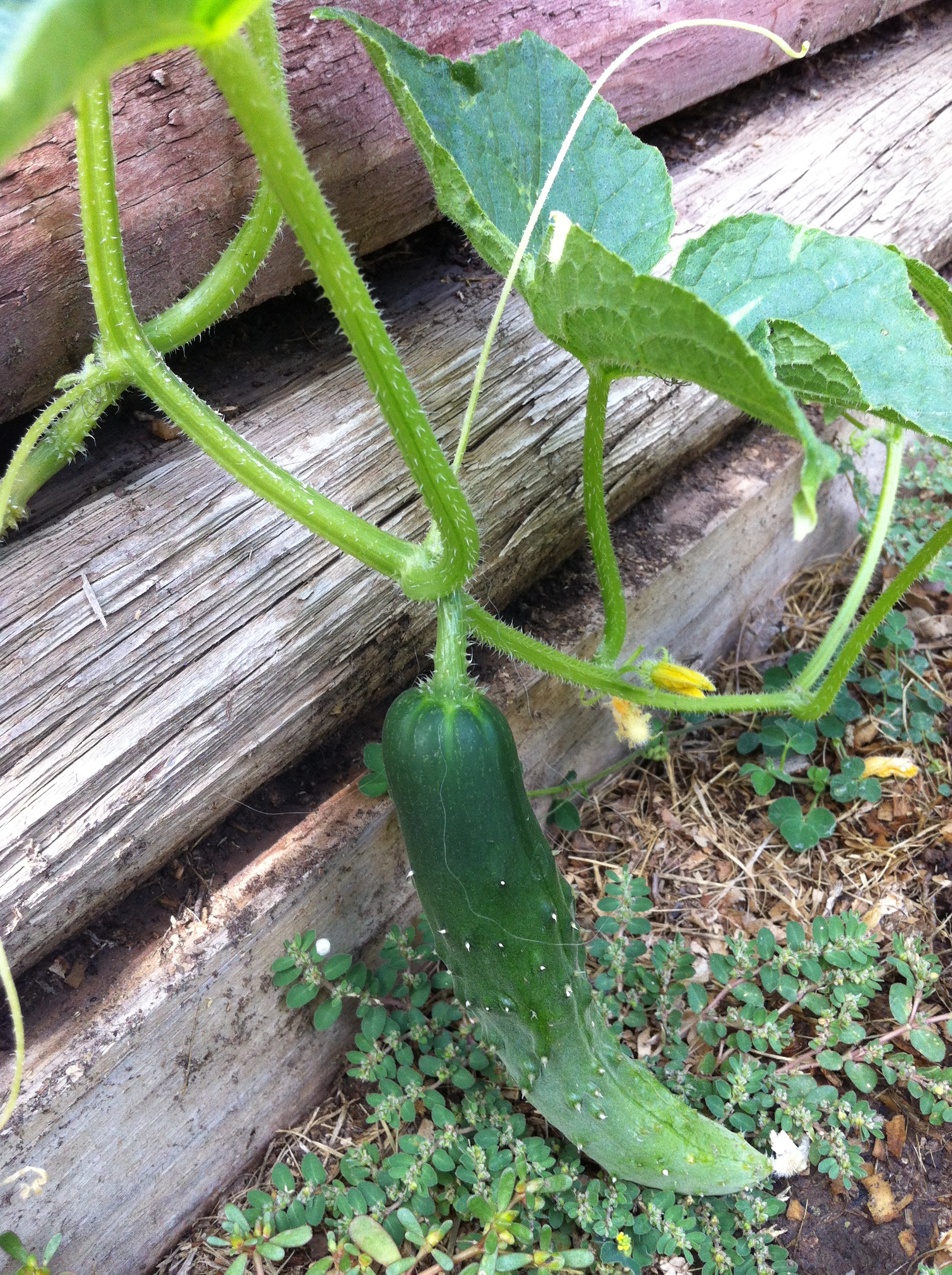 For one thing, if you grow salad style cucumbers, (we have a “burp-less” variety) and your vines are doing VERY WELL this season like ours are, you may at this point of the season have a virtual