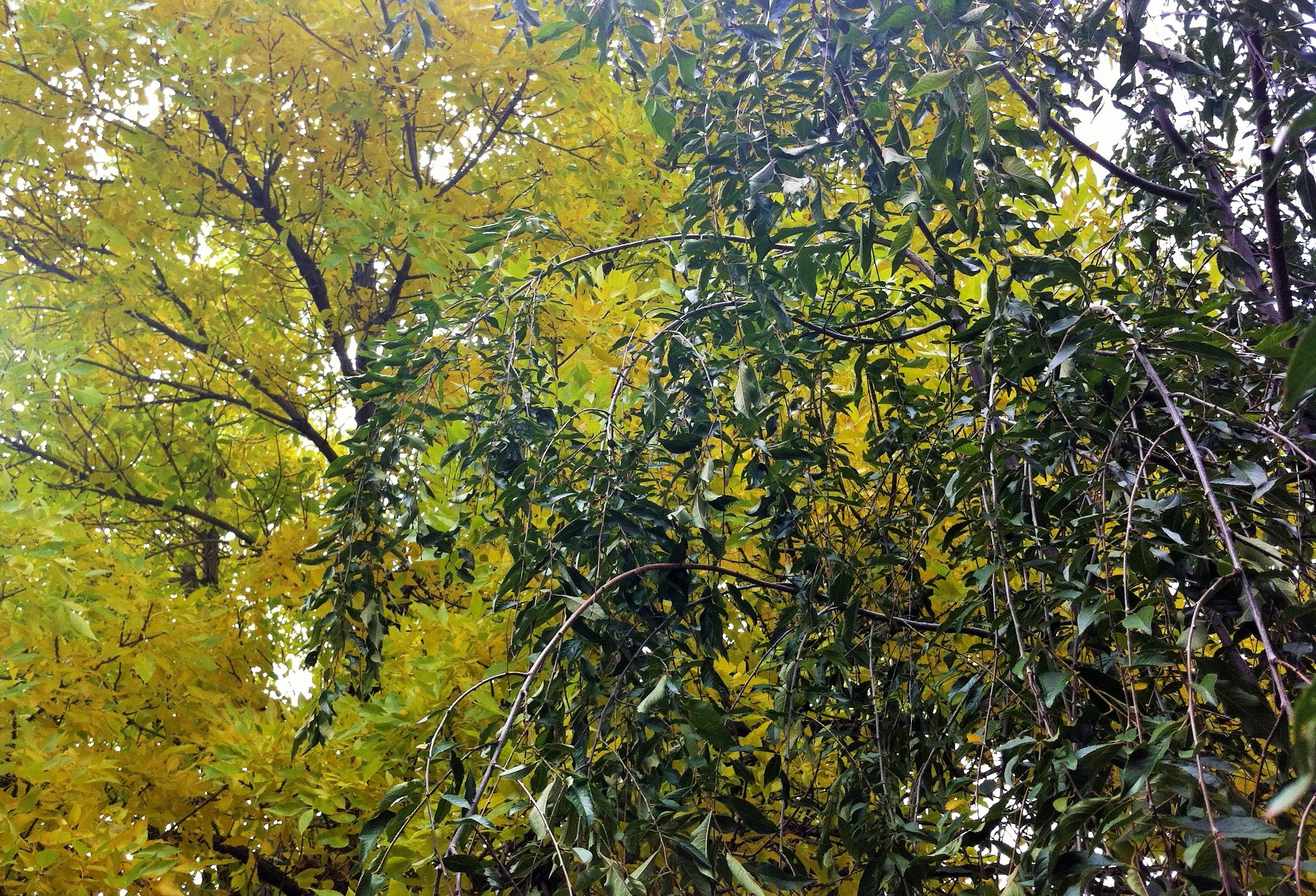 Fall in the garden is rich, and bittersweet. I realize my brain has not quite imprinted everything about my new environs into familiar cubbyholes yet, so sometimes, in the morning especially – I’m hit with brand new sensations, just walking down the steps and looking up. Into these graceful leaves and a wonderful glow.