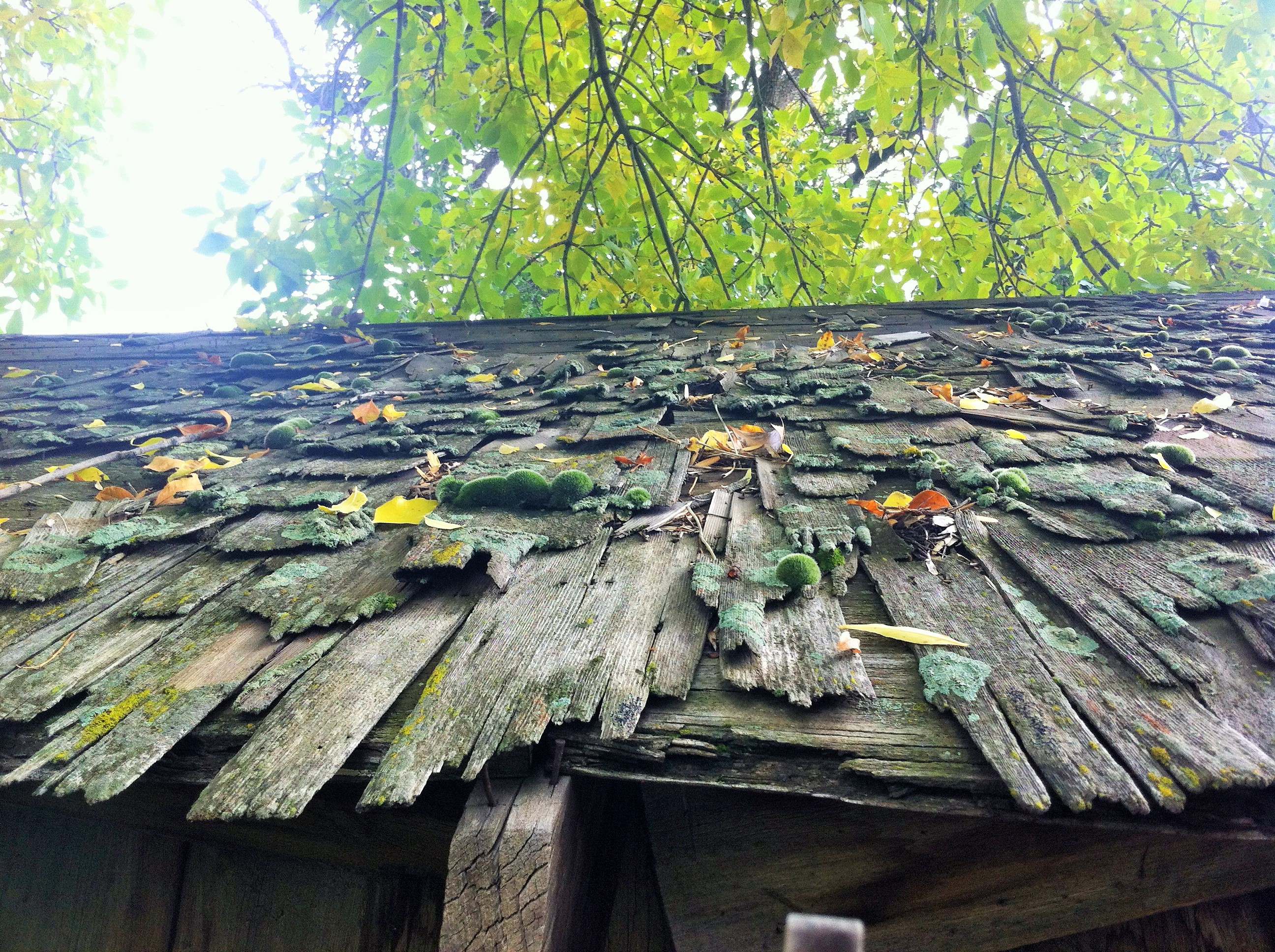 The round nubbins of moss – see them? – on the century old barn roof, were new finds on this property today. So picturesque –