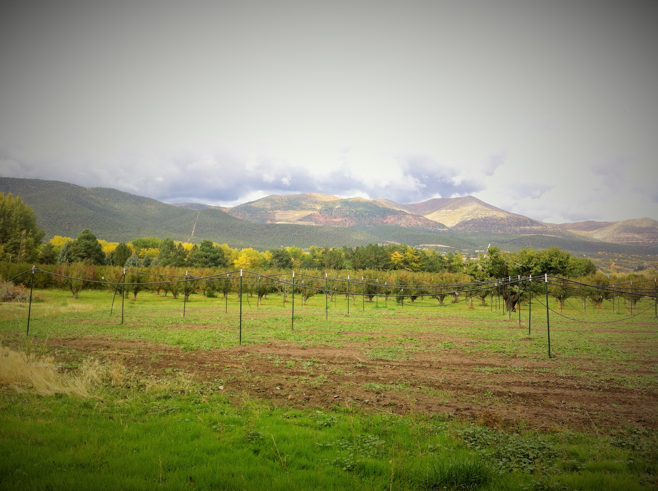The plum tree in the yard shook crazily with droplets today as I ventured out when the rain was letting up. And the orchard gleamed under a low, rain soaked sky. My woodstove hummed with burning cedar wood inside the house. Cozy!