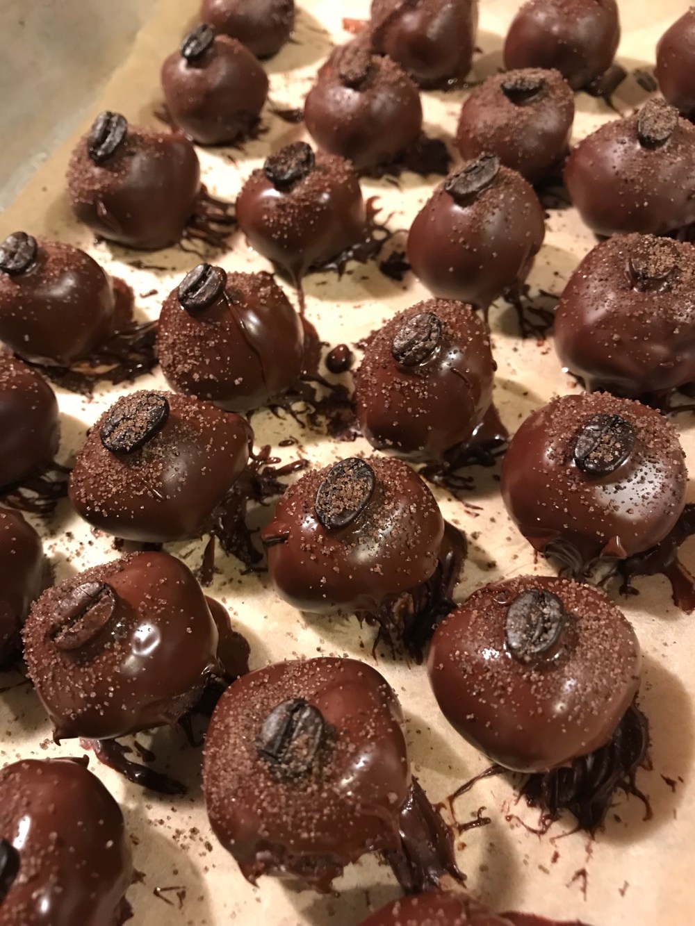 Kahlua Dark Chocolate Truffles with Black Onyx Sugar and Coffee Beans