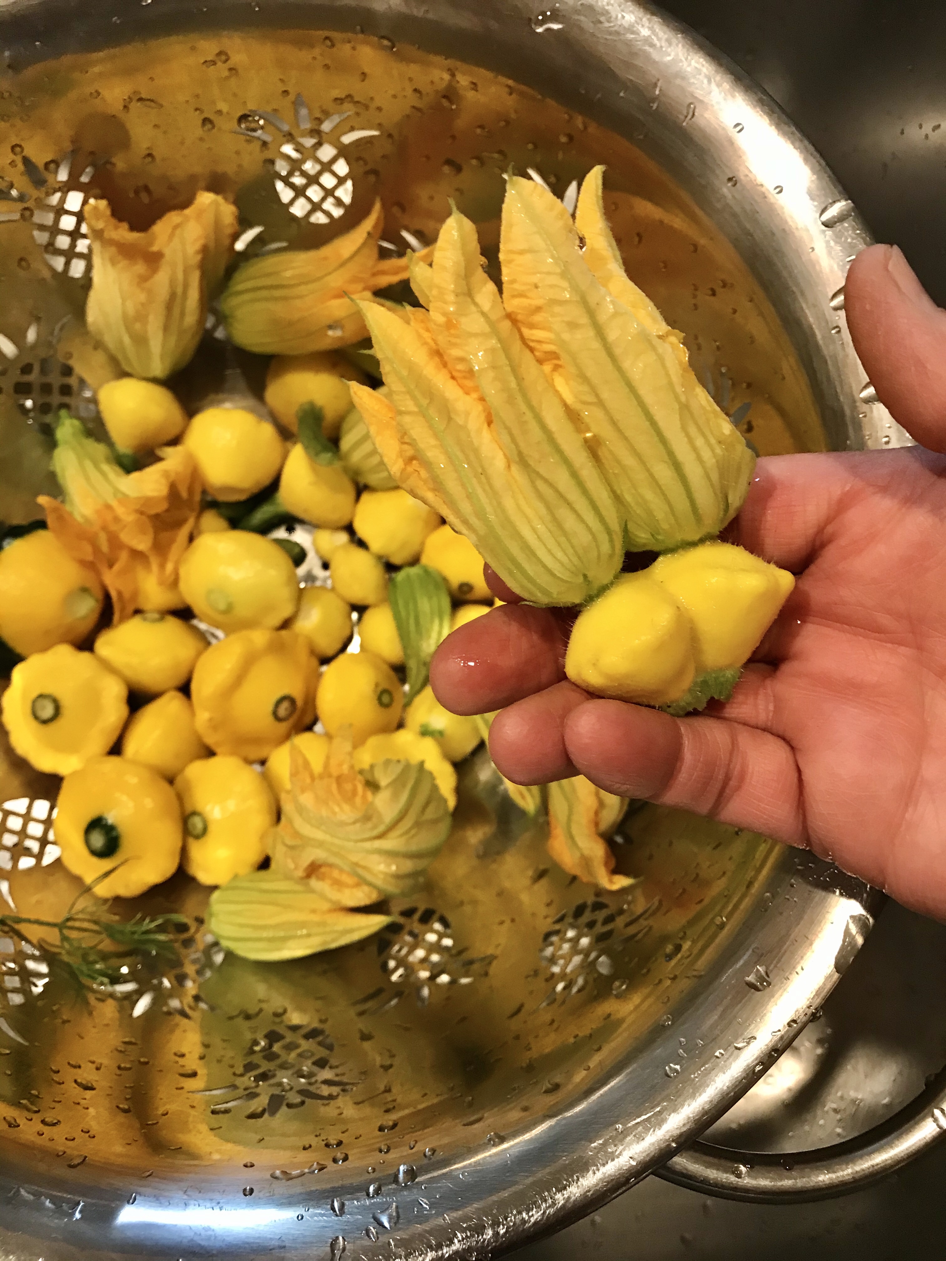 With frost eminent, a colander full of wee patty pans