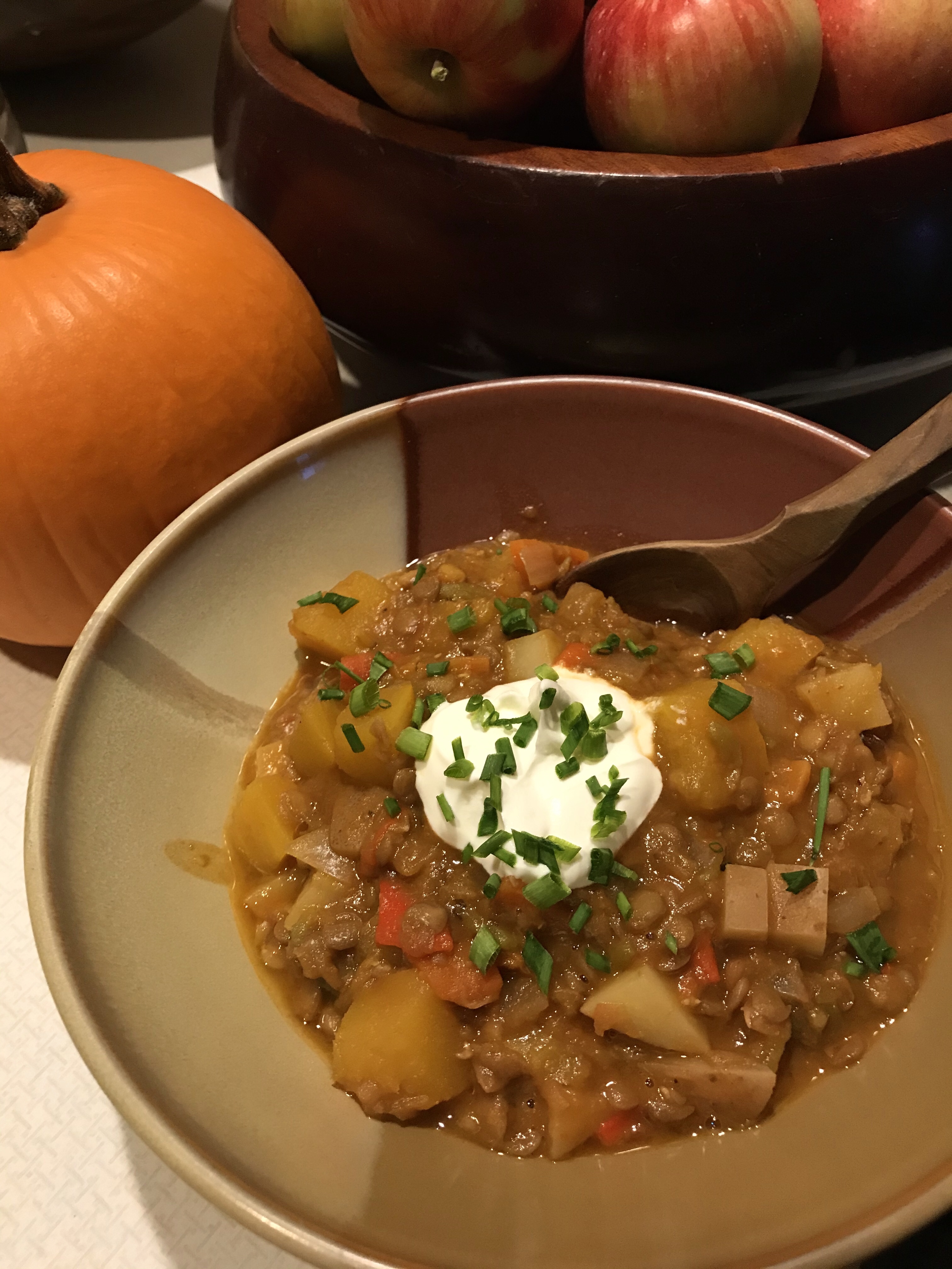 Spicy lentil and pumpkin stew